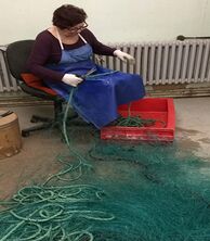 | Gebrauchtes Net wird abgeschnitten | Gebrauchtes Net wird abgeschnitten | Das Netz wird auf neuen Leinen zusammengesetzt |