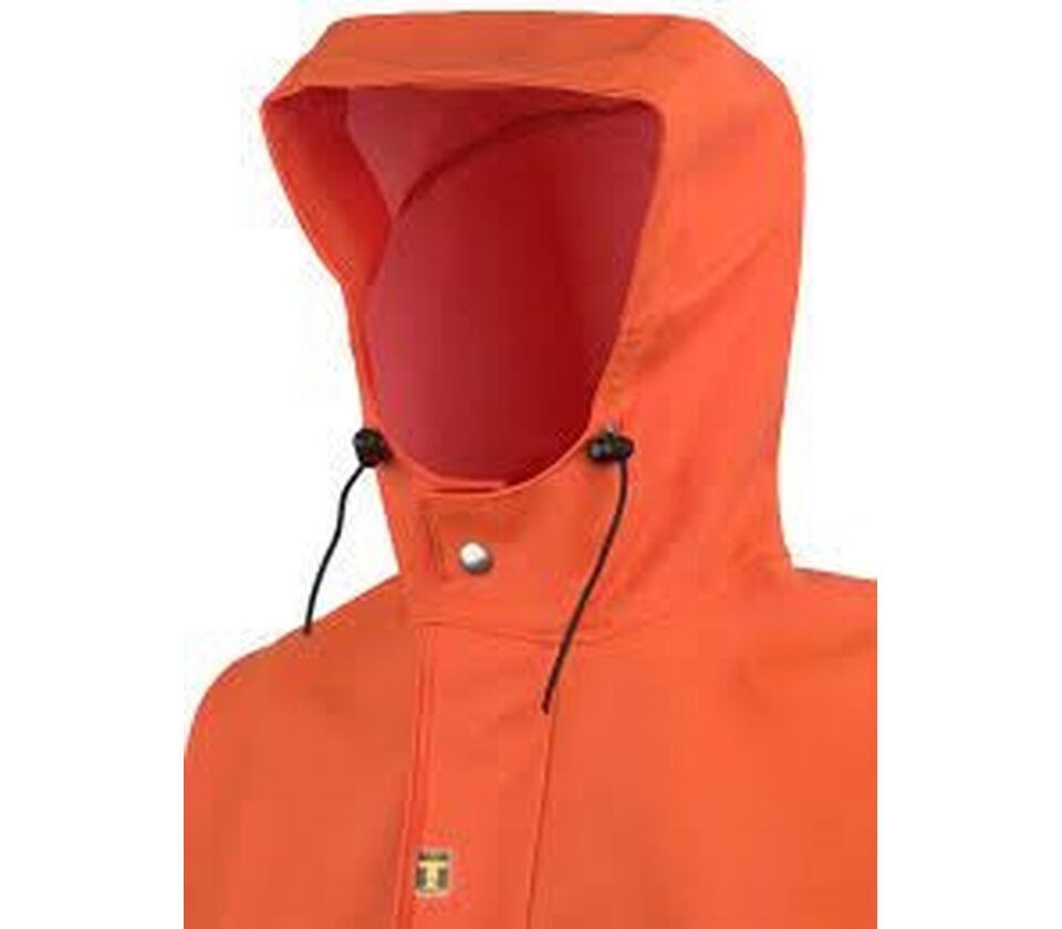 Verstellbare Kapuze mit Schirm, Kordelzug und Knebeln.