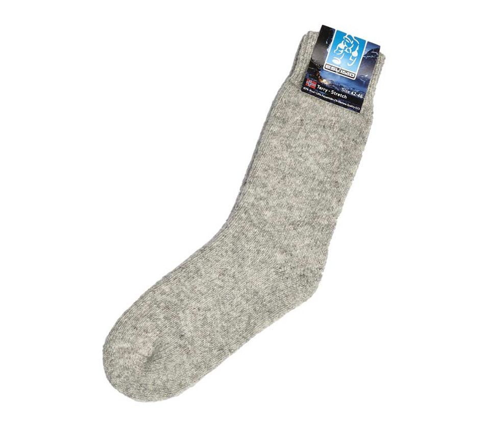 Klassischer Strumpf aus Wolle, der die Füße warm hält.