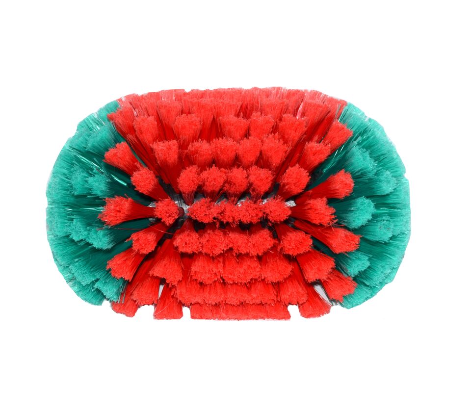 Vikan-Bürste mit Wasserdurchlauf; weiche, geteilte Borsten macht sie flexibel und für viele Zwecke einsetzbar