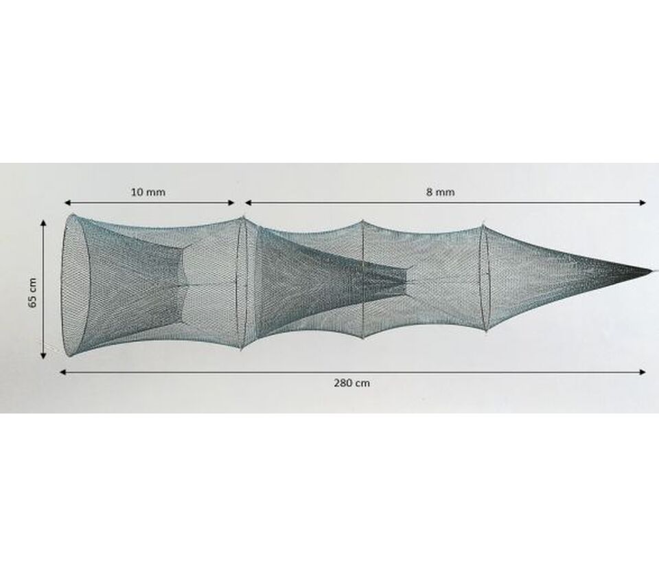 | 2765 | Single fyke | Round - Stainless steel | 2 x 2 m wings and 14 m leader | Knotted | € 520.78 | |||
