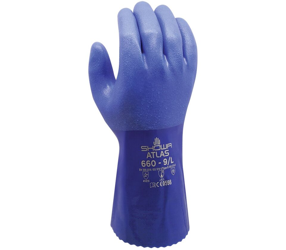 - Olieresistente, 3-lags heldyppede PVC-belagte handsker