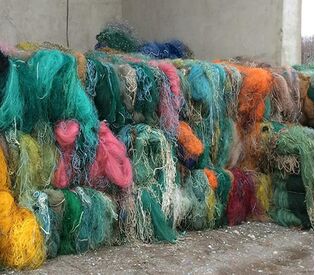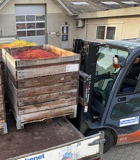 | Brugte garn afhentes hos kunden | Læsses, og køres til egen fabrik i Estland | Brugte garn klargøres til fraskæring | Brugte garn fraskæres |